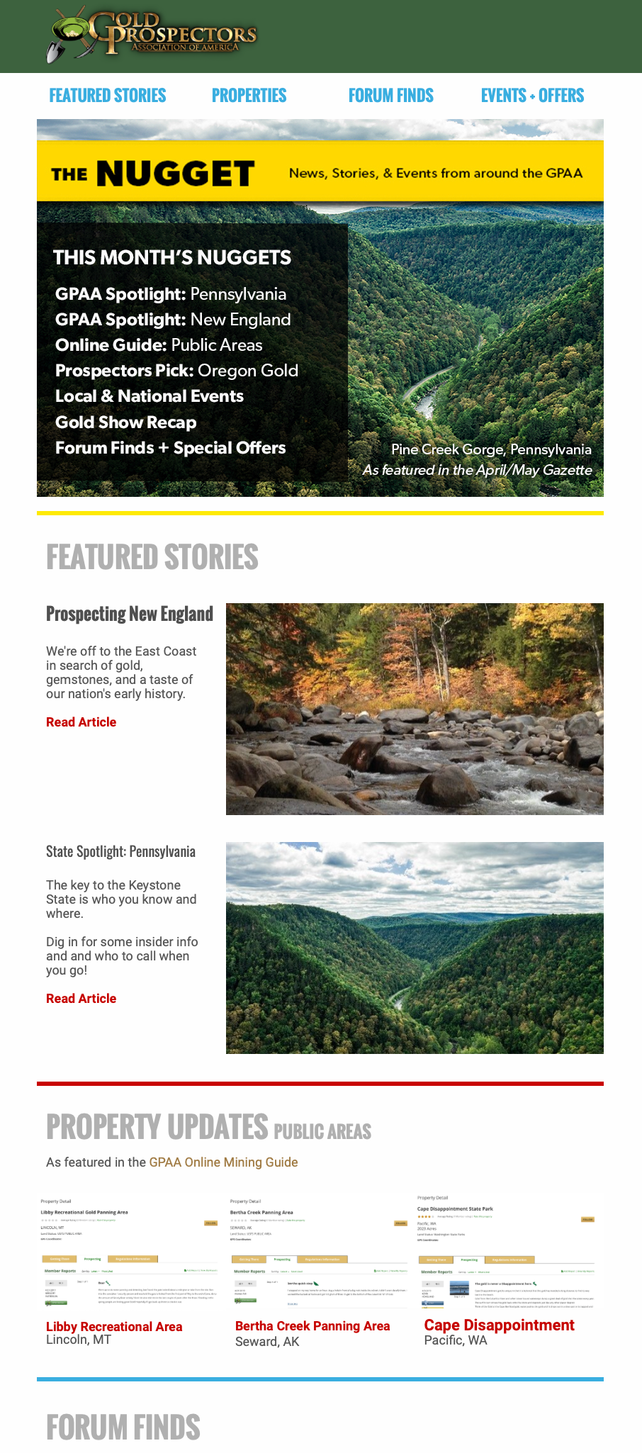 For the world's largest gold prospecting association, we handled their entire digital marketing strategy and print and editorial materials.